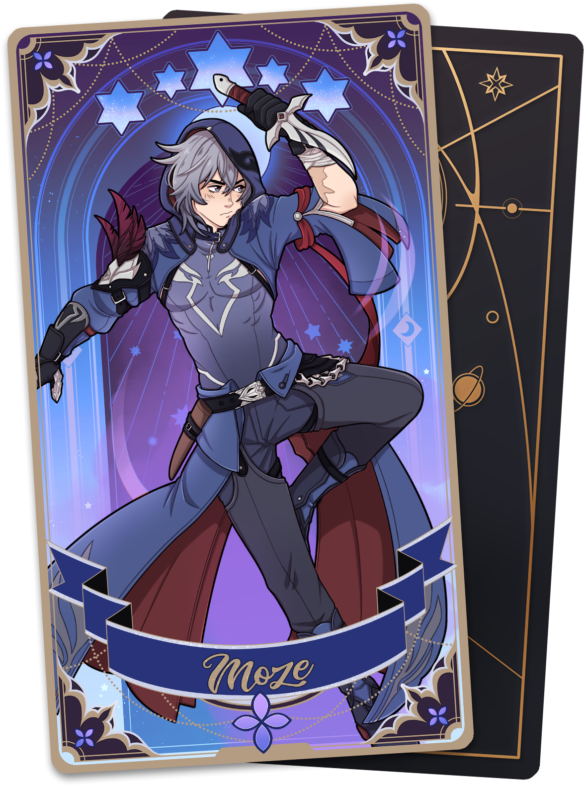 The layout of the cards is based on the tarot cards from the "Fable of the Stars" Web Event, which was available online in early 2024 prior to the launch of Honkai Star Rail's first Penacony (Version 2.0) update. However, the event featured only selected characters available (or about to be released) in the game at the time. Since then, many new characters have joined the ever-expanding roster - and since we loved the idea of the cards in itself, we are now trying to give every character the chance to shine on a fan-made card across the various editions (and spin-offs) of our stamp rally!