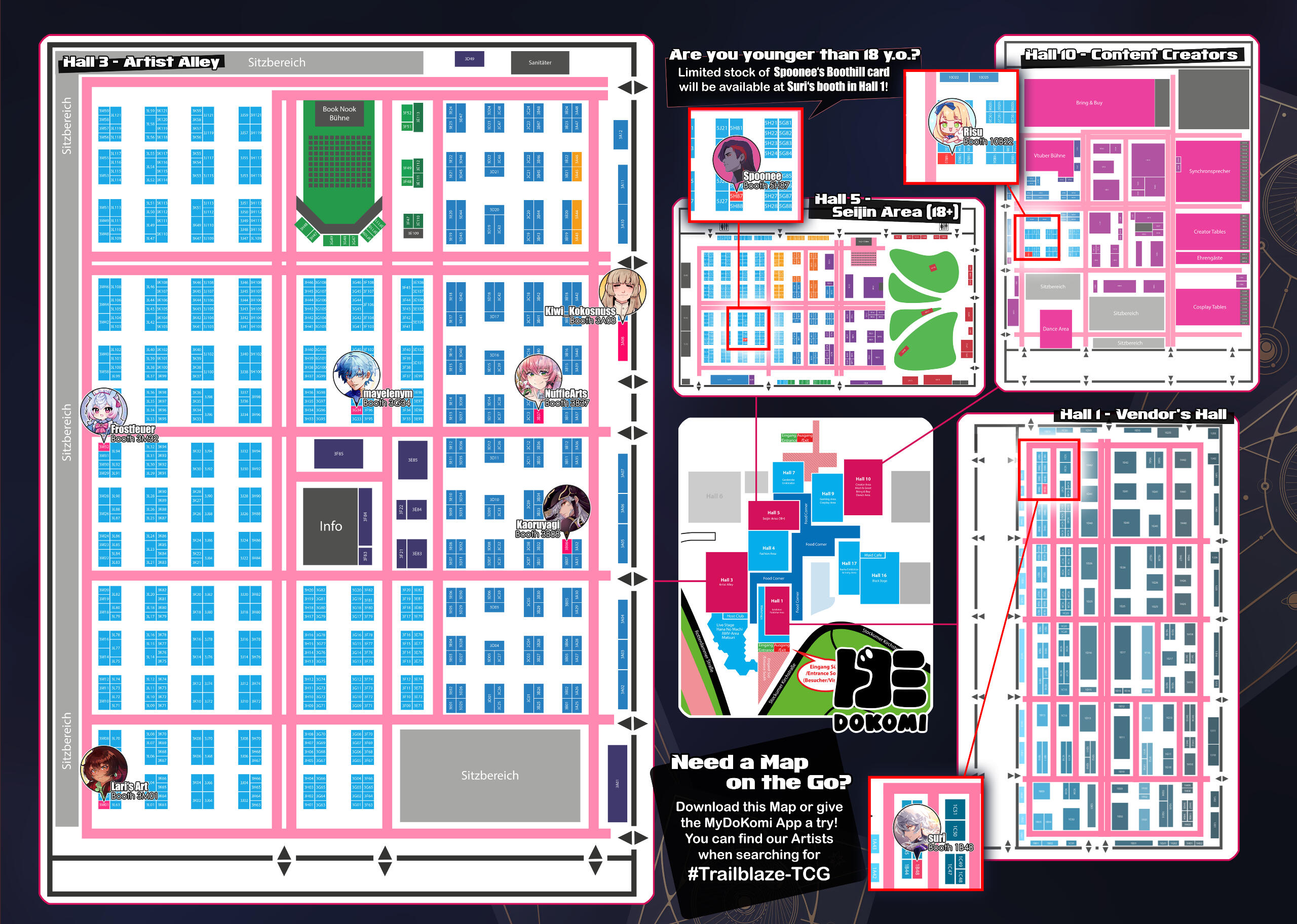 Have you heard about the MyDoKomi App yet? You can also use it to map out all of our artists to plan your route through the DoKomi 2025 Halls ahead of time! Simply search up all of our artist names - some of which you can also find under the Hashtag #Trailblaze-TCG!